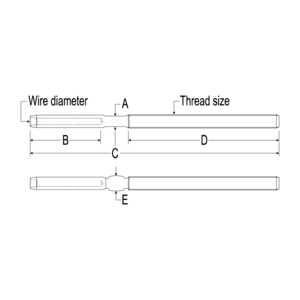 Threaded swage terminals up to and including 7/8" UNF have rolled right hand threads to maximise strength.